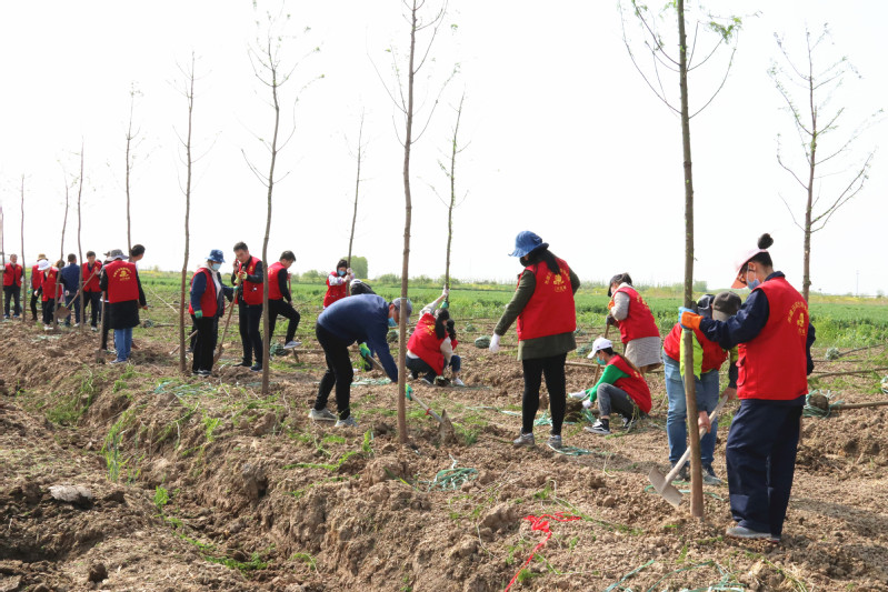 植树现场,大家按照林业部门的要求栽植树苗,扶苗、培土,每个动作都毫不马虎,大家分工合作、相互配合,每一步都规范有序、认真细致;个个争先恐后,兴高采烈,干得热火朝天,都沉浸在劳动的喜悦中。志愿者们用自己的实际行动宣传了生态文明绿色环保理念,为园博园绿化美化建设贡献微薄之力,通过两个小时的努力,共栽植树苗近300株。